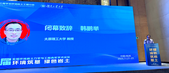 2025年11月22日至23日,第七届全国环境岩土力学与工程青年学术论坛在湖南株洲顺利召开,公司韩鹏举教授带领团队成员参会,以学术报告传递研究成果,在论坛中展现了学校在环境岩土及文物保护领域的研究实力与青年学术风采。