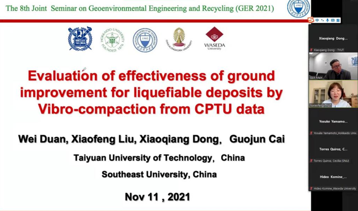 2021年11月11日,“The 8th Joint Seminar on Geoenvironmental Engineering and Recycling”(GER2021)在线上召开,本次会议由韩国首尔国立大学、日本北海道大学、日本早稻田大学、中国永利yl23411、泰国朱拉隆功大学联合主办,由韩国首尔国立大学Park教授主持。学院相关师生积极参与了本次线上会议。