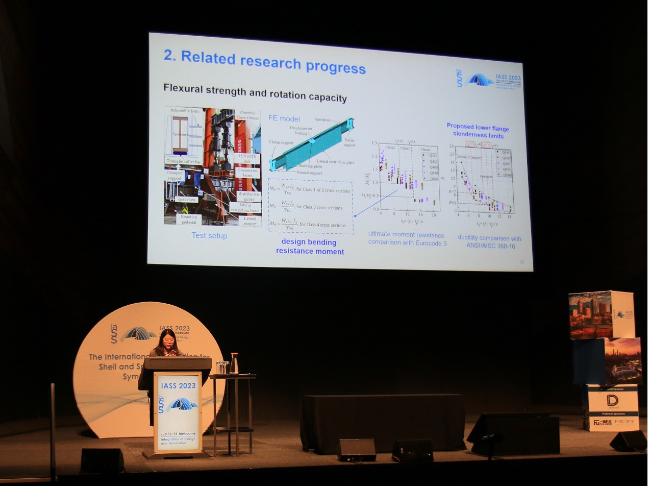 7月10日至14日,公司建工系教师刘晓玲前往澳大利亚墨尔本参加2023国际壳体与空间结构会议,并作题为“Numerical Analysis and Design of Welded I-section Steel Beams with Longitudinally Profiled Flanges under Elastic Overall Buckling”的分会场学术报告。该报告分享了近年来所在研究团队围绕纵向变厚度钢板(LP钢板)这一新型绿色钢板在结构优化设计中亟需解决的关键科学问题研究进展,并与国际同行专家就高性能钢结构领域的热点问题进行讨论。