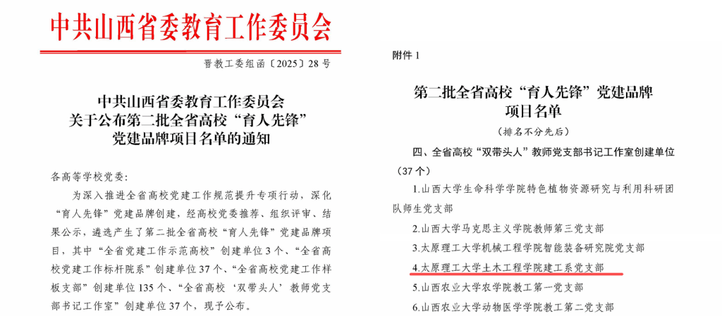 公司党委开展“党建工作规范提升专项行动”以来,公司党建工作再传佳音。近日,省委教育工委正式公布了第二批全省高校“育人先锋”党建品牌项目名单,永利yl23411建工系党支部成功入选“全省高校‘双带头人’教师党支部书记工作室”创建单位,标志着公司党委在新时代高公司党建“双创”工作中取得了又一重要进展。