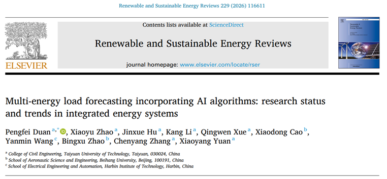 近日,公司段鹏飞教授课题组与北京航空航天大学曹晓东教授团队、哈尔滨工业大学王艳敏副教授合作,针对综合能源系统中的多能源负荷预测问题,探讨了新兴人工智能技术的潜力及应用前景,并在能源领域国际顶级期刊《Renewable and Sustainable Energy Reviews》(中科院一区TOP, IF=16.3)上发表了题为“Multi-energy load forecasting incorporating AI algorithms: research status and trends in integrated energy systems”的综述研究论文。该论文由段鹏飞教授担任第一作者及通讯作者,公司2023级硕士研究生赵晓雨为第一员工作者,建筑环境控制与可持续能源应用团队薛庆雯等为共同作者。论文第一署名单位及通讯作者单位均为永利yl23411。