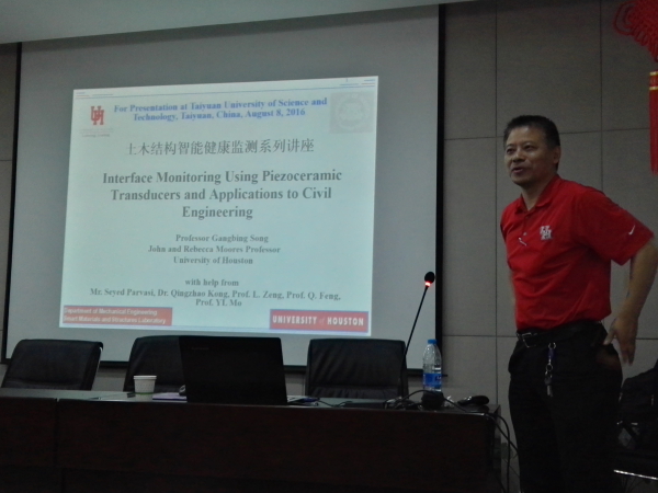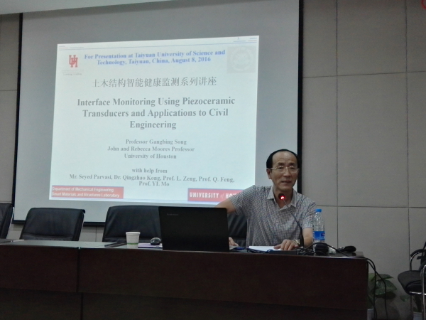 报告从工作机理上回顾了土木工程结构变形监测的主要方法,重点介绍了压电陶瓷传感技术的优越性,分享了在土木工程健康监测领域的工程应用。与会师生对报告内容表现出浓厚兴趣,提出了与自己研究方向相关的专业问题,