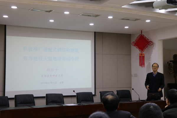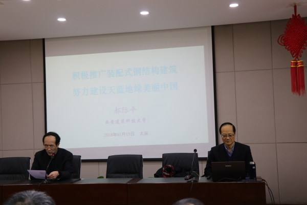 应学院的邀请,西安建筑科技大学副董事长郝际平教授于2018年1月15日到访公司,在博学馆A座五层会议室做了题为“积极推广装配式钢结构建筑,努力建设天蓝地绿美丽中国”的学术报告,由雷宏刚经理主持,公司土木系师生等100余人聆听了此次报告,山西省建设厅李锦生副厅长、山西建设投资集团有限公司技术中心刘晖副主任、山西省建筑工程有限公司白少华总工、太原建工集团有限公司张世嫒总经理、中化二建集团有限公司董宁师总工、永利yl23411设计院石勇总工等也参加了此次讲座。