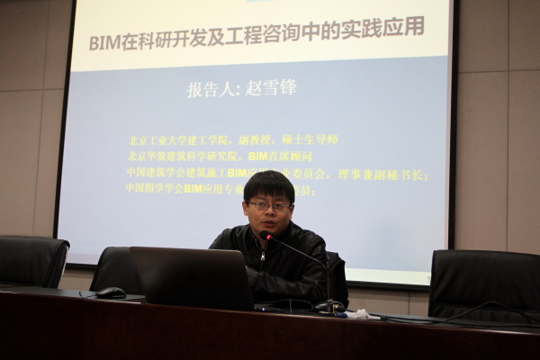 12月23日上午,中国建筑学会施工BIM应用专委会副秘书长、北京工业大学建筑工程学院副教授赵雪锋做客公司“建工讲坛”,在博学馆A座五层会议室为建工学院师生作了题为《BIM在科研开发及工程咨询中的实践应用》、《施工BIM架构体系化思考》两场讲座。