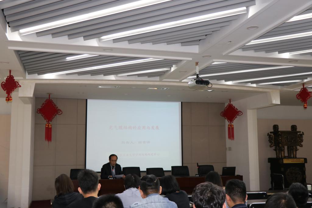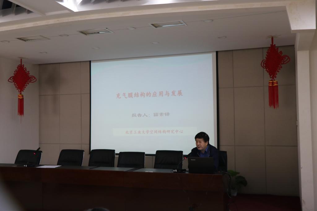 应学院的邀请,薛素铎教授于2018年4月28日到访公司,在博学馆五层会议室做了题为“充气膜结构的应用与发展”的学术报告,由雷宏刚经理主持,土木系师生100余人聆听了此次报告。
