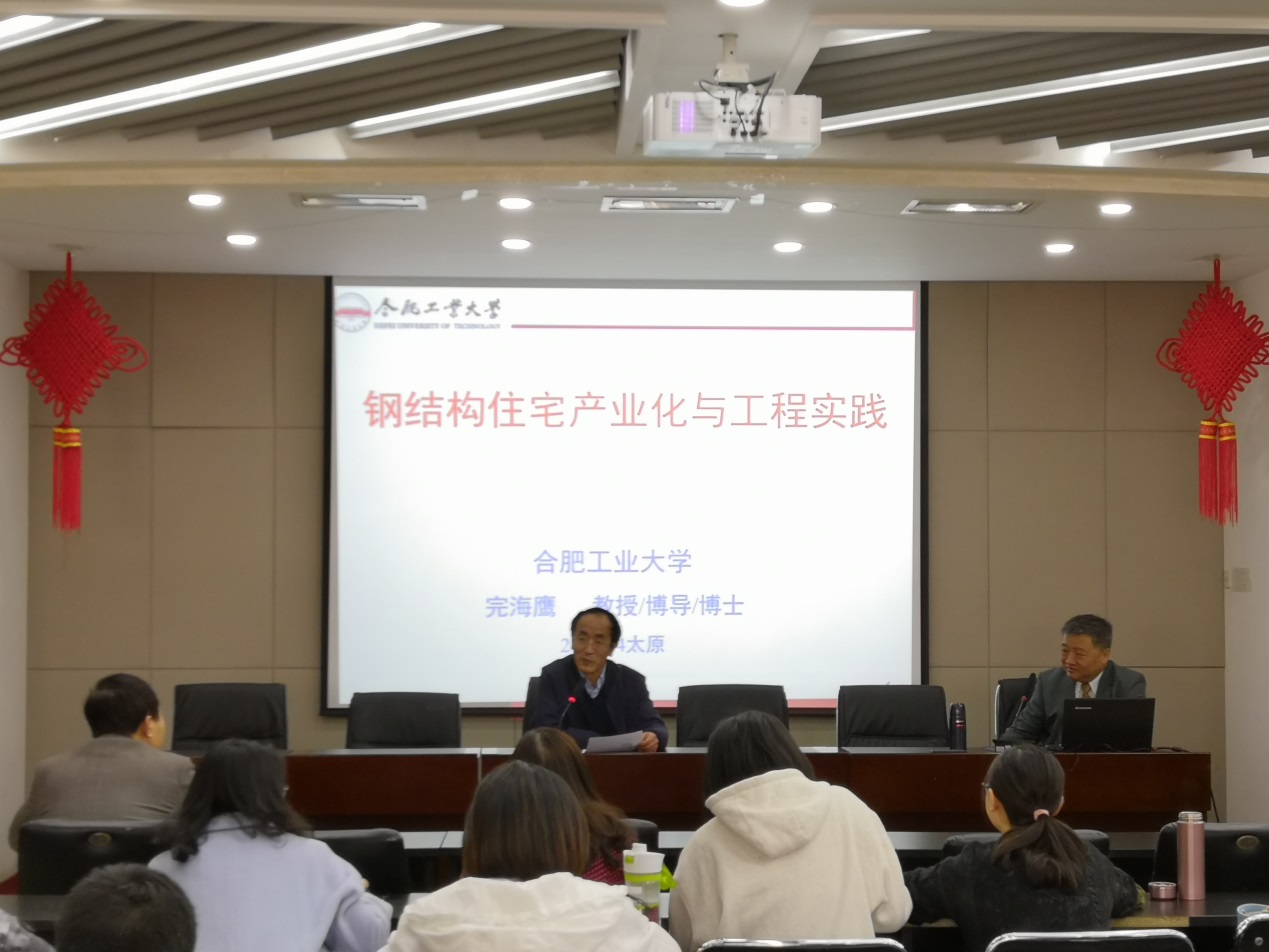 应学院的邀请,合肥工业大学完海鹰教授于2019年4月10日到访公司,在博学馆五层会议室做了题为“钢结构住宅产业化与工程实践”的学术报告,由雷宏刚经理主持,土木系师生100余人到场参加。此次报告为公司庆祝学校117周年校庆学术活动的第一讲。