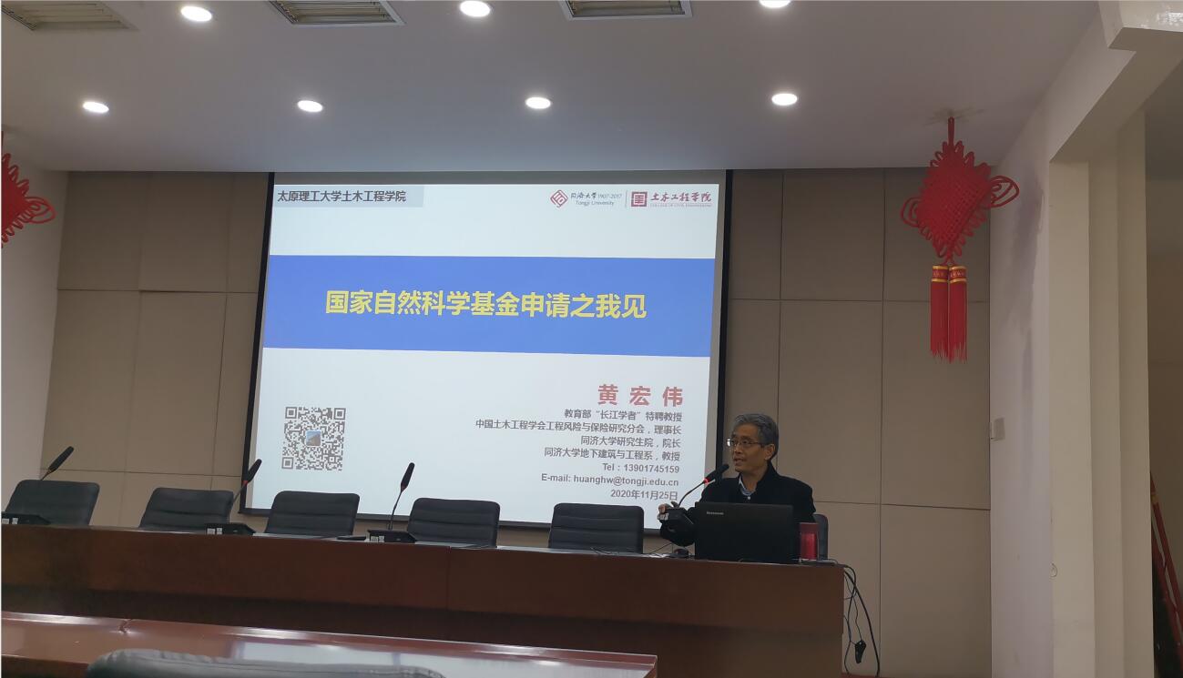 2020年11月25日下午,同济大学黄宏伟教授应邀至公司进行“国家自然科学基金申请之我见”的专题讲座。学院师生积极参加,学术讲座由副经理董晓强教授主持。