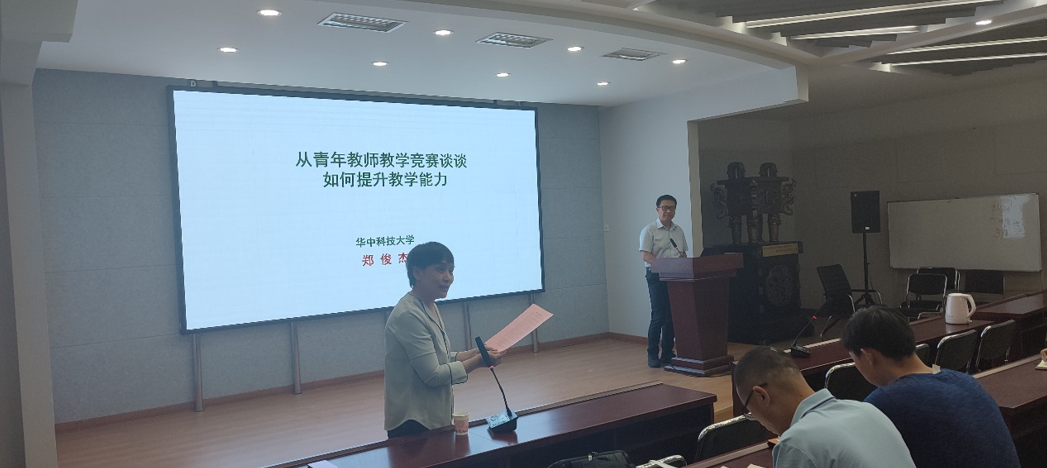 2021年5月31日,华中科技大学郑俊杰教授应邀在公司进行了题为《从高校青年教师教学竞赛谈谈如何提升教学能力》的学术报告。报告由学院本科教学督导组组长曾国红主持。