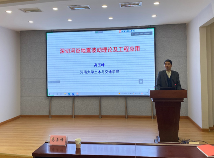 2021年11月26日,河海大学高玉峰教授、武汉大学邹维列教授应邀做了题为《深切河谷地震波动理论及工程应用》和《国家自然科学基金项目申请中的若干问题》的学术报告,百余名师生在博学馆A座五层报告厅参加了学术交流会,会议由经理董晓强主持。