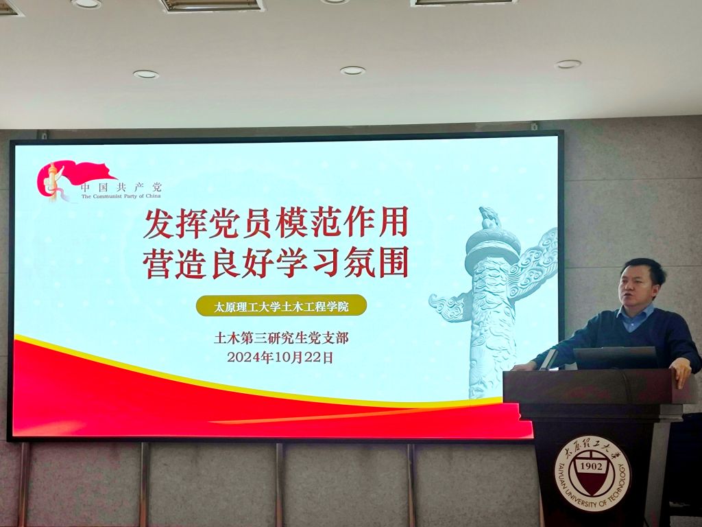 一个党员就是一面旗帜。为进一步发挥党员的模范作用,营造良好的学习氛围,土木第三研究生党支部于2024年10月22日在学院五层会议室召开了专题动员会,支部副书记马富丽,支部所有党员、预备党员和发展对象参加动员会,会议由支部书记何斌主持。