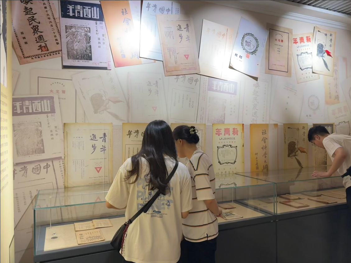 师生们依次参观了纪念馆的各个展厅。第一展厅“创建国民师范,普及国民教育”呈现学校初创历程;第二展厅“建立党团组织,开展员工运动”,主要讲述了山西党团组织的成立以及国民师范员工与反动当局所进行的斗争;第三展厅“利用外围组织,唤起人民大众”,展示的是国民师范进行的一些革命活动;第四展厅“建立统一战线,奋斗牺牲救国”讲述了山西牺盟会的成立及发展。参观过程中,党员同志们神情庄重,不时驻足凝视展陈史料,围绕历史细节展开深入探讨。通过一幅幅珍贵的历史照片、一件件详实的文献资料以及逼真的场景复原,全体成员深刻感悟到革命先辈们为实现民族独立、人民解放,以坚定的理想信念为指引,无畏牺牲、矢志奋斗的崇高革命精神。