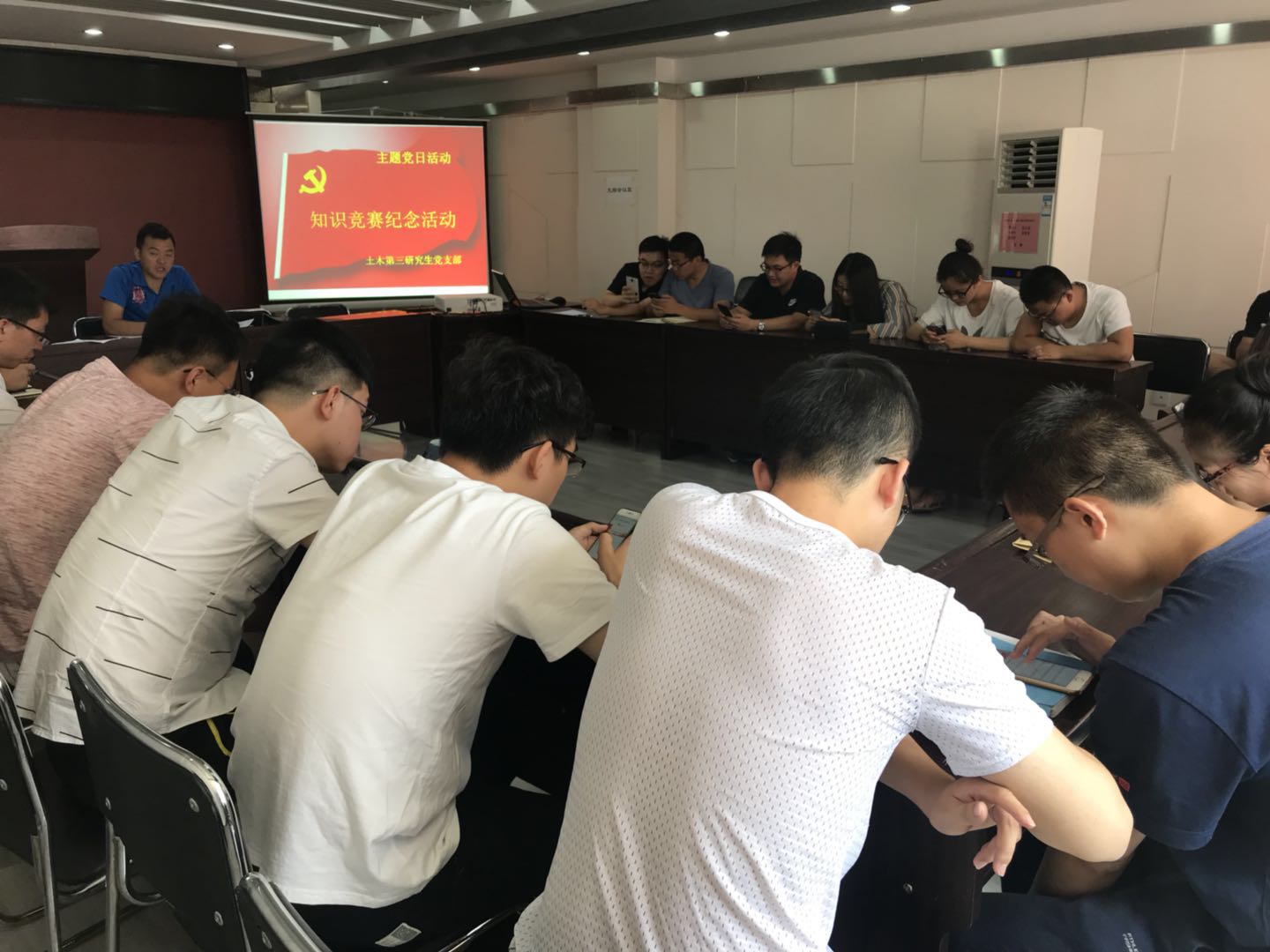 为更好地发挥党组织的政治核心作用和党员的先锋模范带头作用,积极推动学院各项事业科学发展,响应公司党委“七•一”前后在全校范围内组织开展庆祝建党97周年系列活动的要求。2018年6月28,建工学院土木第三研究生党支部在博学馆五层会议室召开了庆祝建党97周年主题党日活动。本次活动由支部书记何斌同志主持,共有24名同志参加,其中正式党员17名,积极分子7名。