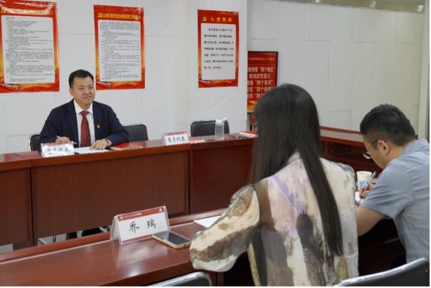 2024年5月21日上午,由山西农业大学公共管理公司党委副书记温娟带队,山西师范大学马克思主义公司党委书记乔瑞、山西农业大学城乡建设学院团委书记王立柱、临汾职业技术学院计算机系办公室主任郭春苗组成的第三批全国样板党支部实地验收专家组到公司就土木第三研究生党支部全国党建工作样板支部创建情况进行实地验收。公司党委副书记刘润祥对验收组表示欢迎,公司党委组织部副部长杨滇平出席,公司党委书记武佐君,经理董晓强、副书记芦倩、党政办主任王婕、团委副书记张振银和土木第三研究生党支部书记何斌、副书记马富丽参加验收会议。验收会由武佐君主持。
