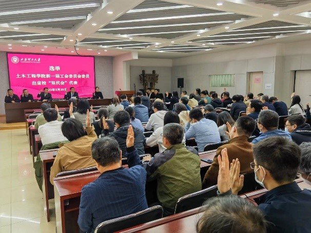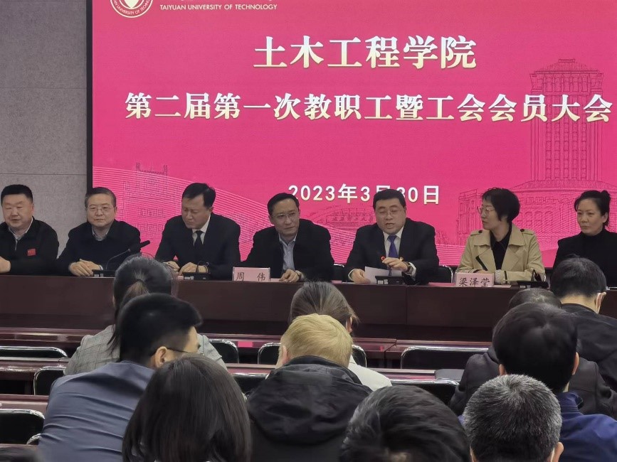 大会在激昂的国歌声中拉开序幕。董晓强作题为《凝聚力量、锚定方向、埋头苦干,为学校“双一流”建设挺膺担当》的行政工作报告,回顾了学院在教学科研、团队建设、人才培养、团队队伍建设、行政管理等方面的工作内容,分析了学院发展面临的机遇和挑战,并对2023年重点工作进行了安排部署。他指出,近年来,学院一如既往稳步发展,各项工作取得了可喜成绩。他要求,学院将在习近平新时代中国特色社会主义思想的指引下,对标一流,凝聚合力,加强内涵建设,锚定高质量发展,再铸土木学院新的辉煌。院工会主席贺武斌代表一届工会委员会作工会工作报告,他表示本届工会是学院成立以来第一届工会委员会,院工会在公司党委和校工会的正确领导下,在全体工会委员和小组长的共同努力下,紧紧围绕学院中心工作,不断提高教师教学水平,坚持维护教职工权益,做好维权帮扶工作,加强工会的组织建设和师德师风建设,为学院发展做出了积极贡献。