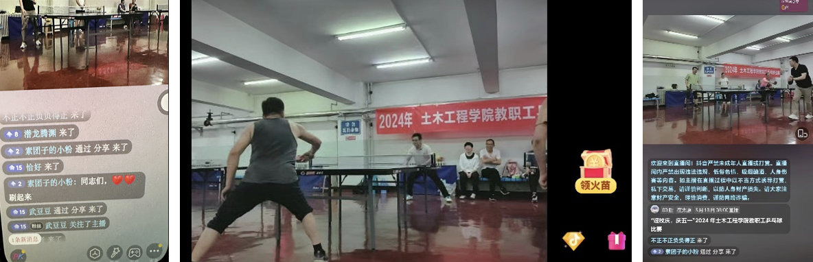 值得一提的是,本次比赛学院工会首次尝试了抖音直播,成功实现了线上线下的互动,吸引了80余位观众在线观看,极大地提升了活动的参与度。这一创新举措不仅让更多的人能够参与和关注比赛,还为活动增添了更多的互动性和趣味性。