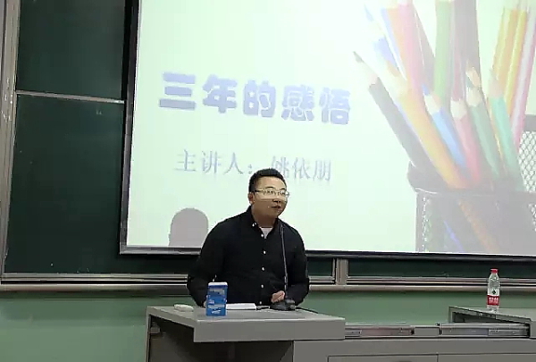 第二环节姚依朋分享了在自己创业方面所经历的困难以及取得的成绩。他用自己高三毕业时赚到人生第一桶金的经历来勉励同学们,要积极动手,不怕失败,有了想法就要勇敢的付诸于实践。否则空想只能是空想。姚依朋还谈到了师生关系,指出要同学们要与老师和谐相处,要积极地和老师去交流沟通,做一个尊师重道的优秀学子。
