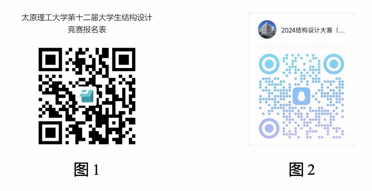 自即日起至2024年2月25日12:00点击下方链接或扫码(图1)填写《永利yl23411第十二届老员工结构设计竞赛报名表》,同时扫码(图2)加入2024结构设计大赛(校赛)通知群QQ群,报名链接:https://f.kdocs.cn/g/k8cMpq3C/,指导教师名单及联系方式随后将在群内公布,每支队伍可联系一位指导教师,每位指导教师可最多指导三支队伍。