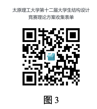 2、提交方式和时间:各参赛队将理论方案按A4格式排版,于2024年3月20日12:00前将理论方案点击下方链接或扫码(图3)上传至《永利yl23411第十二届老员工结构设计竞赛理论方案收集表单》,上传链接:https://f.kdocs.cn/g/gwsCuOuE/。逾期上传作自动放弃处理,理论方案为零分。