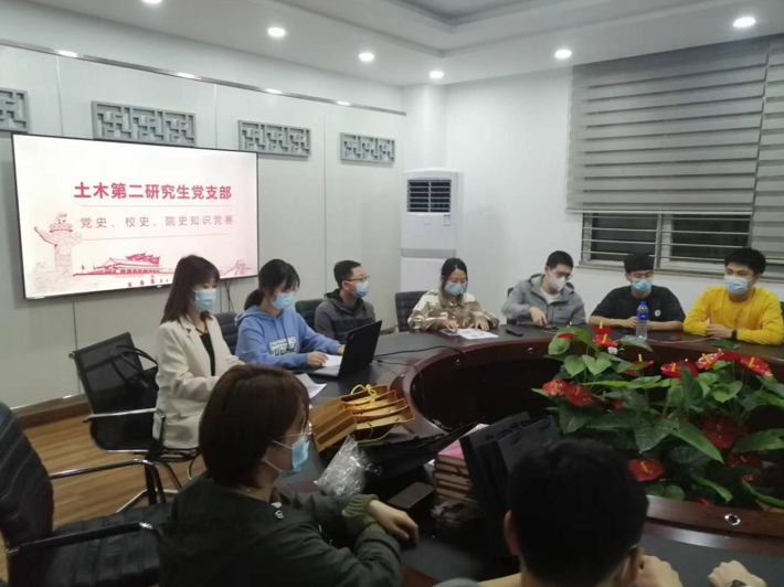 为深入推进党史、校史和院史教育,贯彻落实牢记初心使命、推进中华民族伟大复兴历史伟业前进,弘扬优良办学传统,总结宝贵治校经验,为建设综合性研究型高水平“一流”大学而奋斗,秉承“求实创新”校训精神,践行“强国有我”使命担当,4月8日19时,土木第二研究生党支部在博学馆A座二楼会议室开展了党史、校史、院史知识竞赛活动。