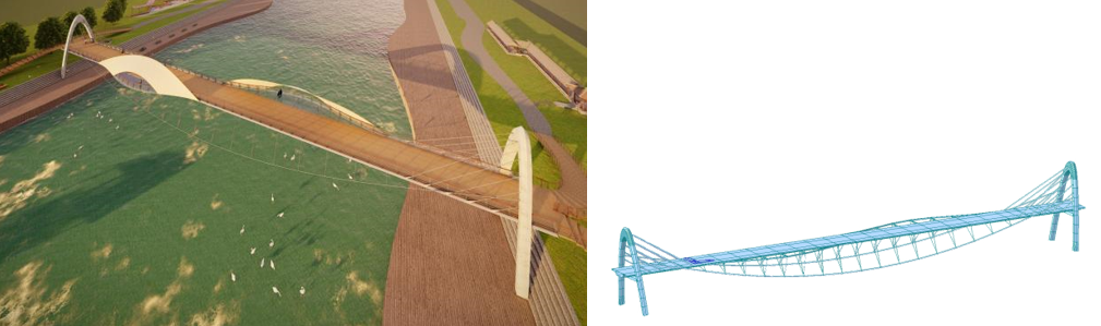 玉带天桥小组参赛门类为最佳景观设计奖三等奖(全国共6队获奖,排名第5)。该小组的作品为山西博物院玉带天桥总体方案设计,该桥位于山西博物院附近的一座主跨30m的梁拱组合体系人行桥。该桥连接山西博物院和汾河景区晋汾古韵景点,以玉佩为灵感进行造型设计。通过双侧向内弯曲桥拱加以“玉璜”状横联来体现玉佩组的形象,同时通过计算主桥曲线在三维空间的延伸得到人行楼梯的空间曲线,使整体形象如带状细长蜿蜒。
