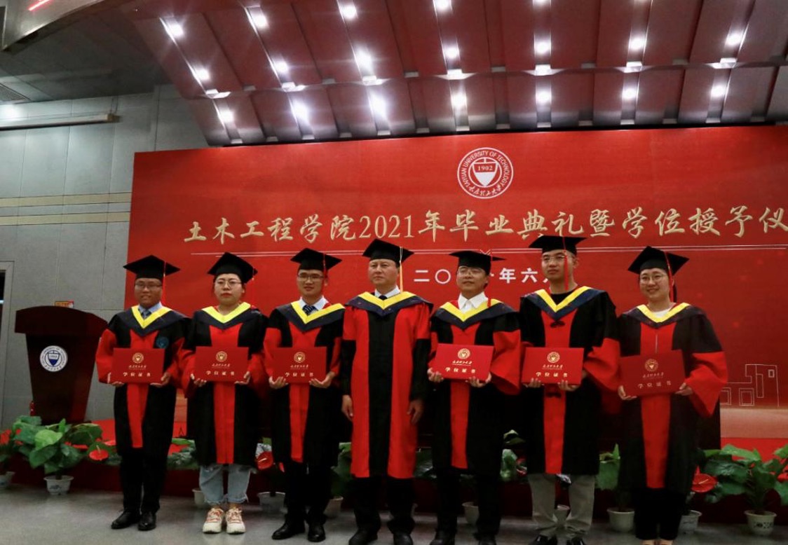 Afterwards, Professor Dong Xiaoqiang gave a graduation speech to all the graduates. First of all, he commend the diligence and innovative spirit of the current graduates, and hope that the majority of graduates should always uphold the motto of "earth inherits the world, wood supports the sky", look up at the stars, stay down-to-earth, and show the pattern in continuous struggle, staying determined in success or failure. Always remembering the experience of studying in the College of Civil Engineering, letting go of youthful ideals, building a beautiful country, and finally realizing the value of life. Lastly, the graduation ceremony ended up with the loud and clear university song. Dong Xiaoqiang plucked the spikes, awarded degrees and took a group photo for each graduate.