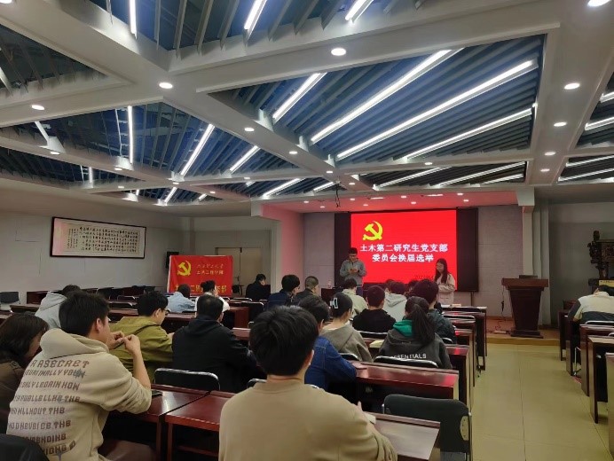 会议上,支部正式党员对5位候选人进行不记名投票表决。经过唱票和计票环节,王永宝、高阳、雷蕾和杨书琦4位同志当选为土木第二研究生党支部新一届委员会委员。随后,新的一届委员会全体会议选举王永宝为党支部书记,高阳为党支部副书记和纪检委员。雷蕾任组织委员,杨书琦任宣传委员。
