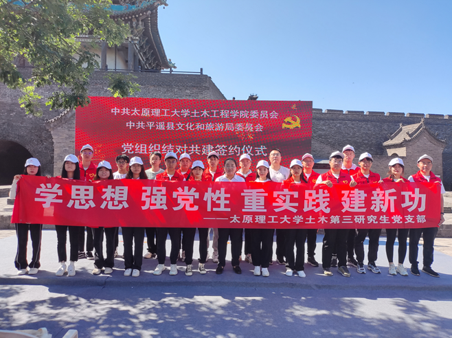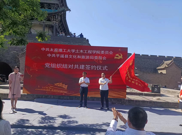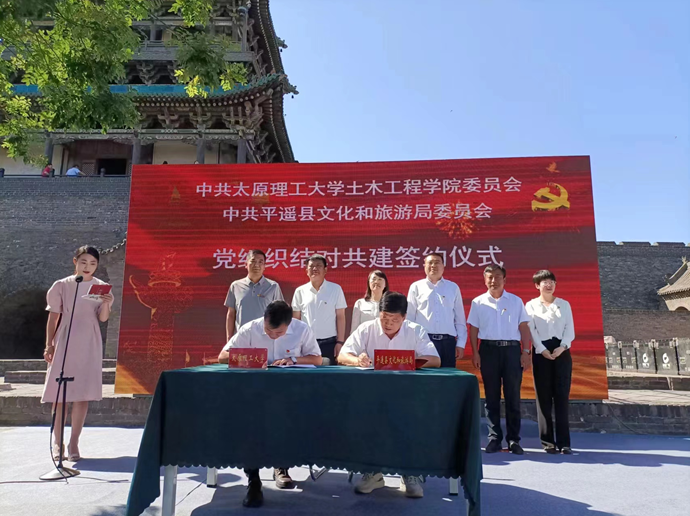 为扎实推进学习贯彻习近平新时代中国特色社会主义思想主题教育,进一步探索创新党建工作,全面开展基层党组织结对共建活动,着力构建基层党建工作新格局。正值2023年6月10日文化和自然遗产日之际,支部书记何斌和副书记马富丽带领全体党员同志赴平遥开展主题教育实践活动。平遥县委常委、组织部长程建明、县政府副县长张旭峰、县文旅局局长郭效云、公司党委组织部副部长谢鹏华、公司党委书记武佐君、科研院副经理李飞、学院工会主席刘元珍、韩鹏举教授和白晓红劳模创新工作室等领导和老师们应邀出席了签约仪式。