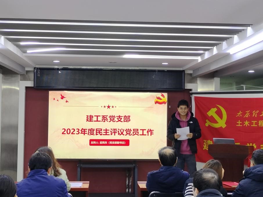 接着,在建工系党支部副书记孟宪杰的组织下进行了“2023年度民主评议党员大会工作”,进行了党员自评和党员互评两项工作,讨论确定了2023年度党员民主评议“优秀”等次的人员名单。