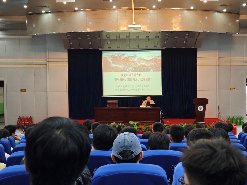 韩前伟以《推进中国式现代化:历史演进、理论内涵、战略安排》为题从历史演进、中国特色、本质要求、重大原则、处理好六大关系以及全面建设社会主义现代化国家的战略安排等六大方面进行了系统阐述。他强调,中国式现代化的本质要求和核心特色是坚持中国共产党的领导、坚持中国特色社会主义道路,实现高质量发展,发展全过程人民民主,丰富人民精神世界,实现全体人民共同富裕,促进人与自然和谐共生,推动构建人类命运共同体,创造人类文明新形态。学习中国式现代化的历史演进、理论内涵和战略安排,不仅是为了提升理论素养,更重要的是要将其转化为实际行动,为推动现代化建设贡献自己的力量。他祝愿全院师生党员能够将所学理论知识运用到实际工作中,为实现中国式现代化的伟大目标而努力奋斗。
