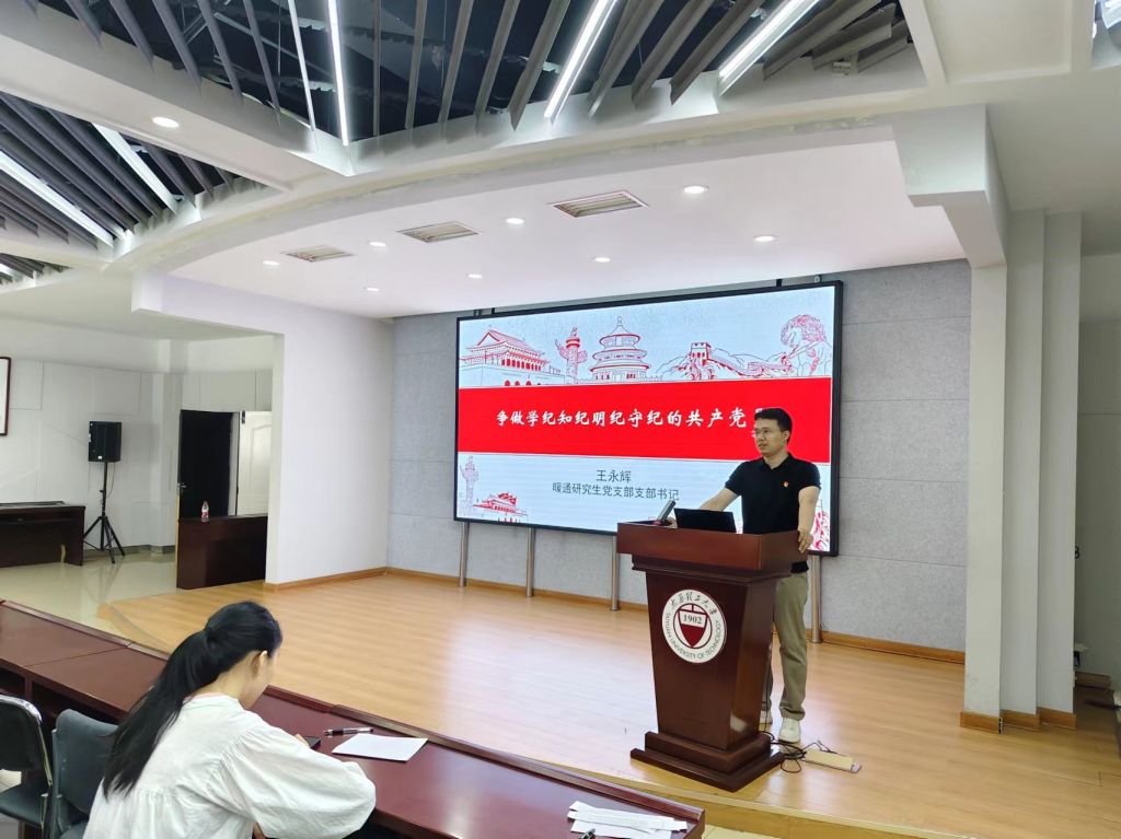 2024年5月23日,暖通研究生党支部在博学馆五层会议室召开全体党员会议,主要围绕纪律专题开展支部书记讲党课、纪检委员领学理论和全体党员讨论学习。